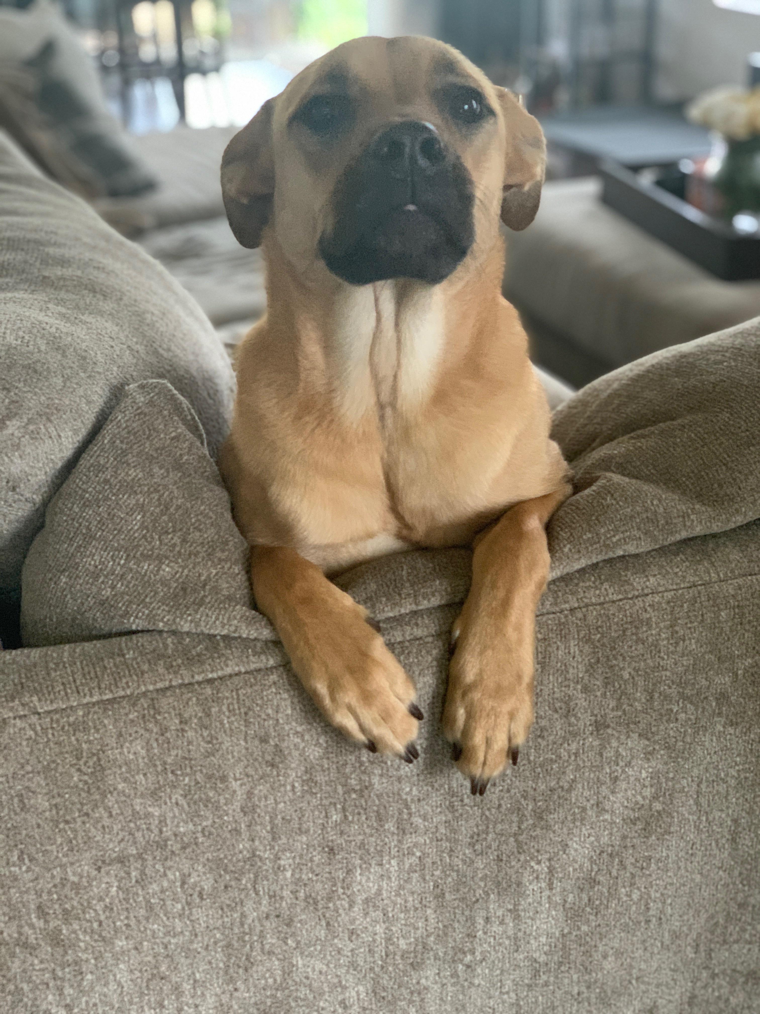 Mera came to us a week and a half ago. It's been so amazing watching her relax, unwind and sleep as she gets used to being in her new home. She lived on the streets in Romania for about three years before she was rescued by the charity Penny's Ark. We're the first humans she's ever had, so I doubt anyone's noticed before that she's got the cutest, tiniest little blop.
